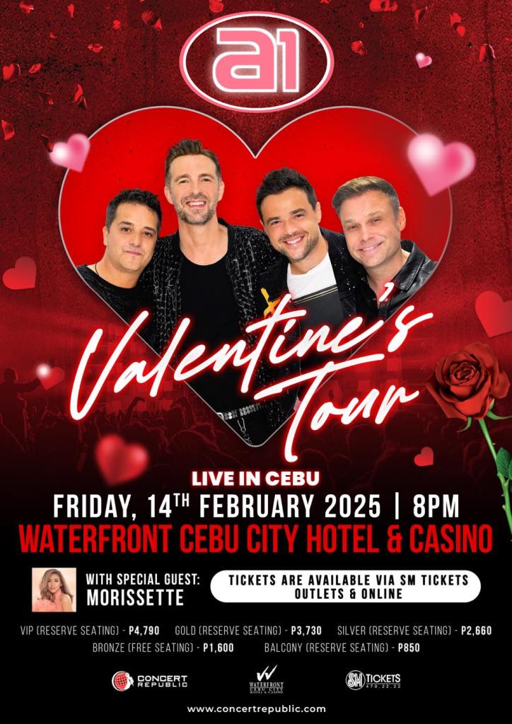 Adding even more excitement to the Cebu show, A1 is thrilled to announce that the evening will feature none other than Asia’s Phoenix, MORISSETTE, as their special guest. With her powerhouse vocals and emotional performances, MORISSETTE is set to elevate the Valentine’s Day concert experience for Cebuano fans to new heights.