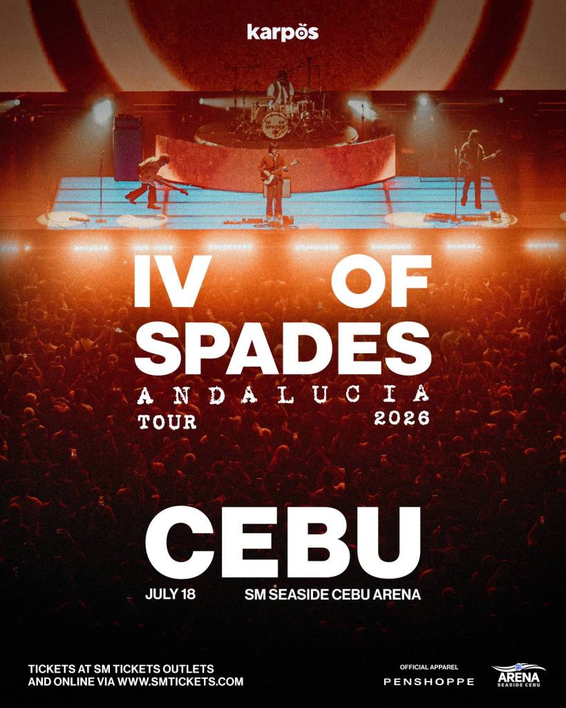 Alternative rock powerhouse IV OF SPADES has officially released the ticket details for the Cebu leg of their Andalucia Tour, scheduled for July 18, 2026, at the SM Seaside Cebu Arena. This announcement follows their critically acclaimed two-night residency at the Mall of Asia Arena last December, a run that garnered widespread praise from music critics and secured the #5 spot on the GIG AWARDS 2025 Top 10 Concerts of the Year (Local). Fans in the Queen City of the South can expect an immersive two-hour performance featuring a career-spanning setlist that journeys from their debut hits to the latest tracks from their newest album, Andalucia.